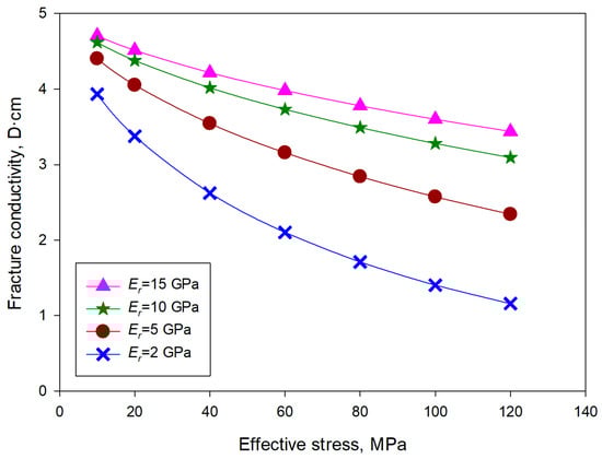 Figure 13. Impacts of fracture surface elastic modulus ( E r ) on single-layer propped fracture conductivity.