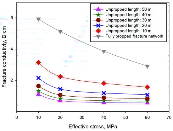 Figure 17. Comparison of conductivity of fracture networks with different unpropped lengths.