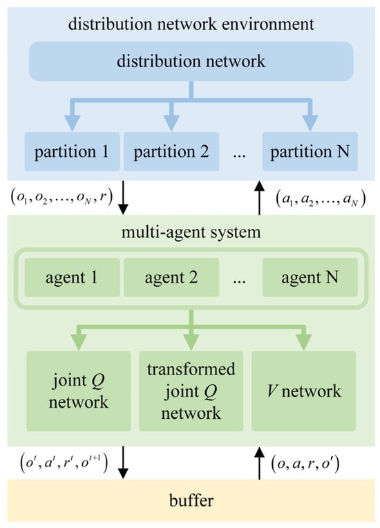 - Joint action space : with the action space of each agent denoted as , the joint action space can be defined as . In the distribution network load restoration scenario, the action space for each agent is defined as follows: