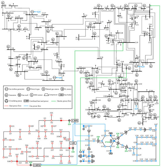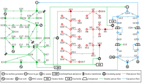 - Jiang, Y.; Ren, Z.; Yang, X.; Li, Q.; Xu, Y. A steady-state energy flow analysis method for integrated natural gas and power systems based on topology decoupling. Appl. Energy 2022, 306, 118007. [Google Scholar] [CrossRef]