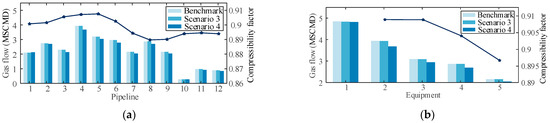 - A novel matrix-based DGN model consisting of hydraulic and composition-tracking models is constructed in a standardized manner in which the diversity of gas-network components is comprehensively considered. The varying gas-compressibility factor is first incorporated into the static EFC of IEHGES, and its impact on the overall system state is fully demonstrated.