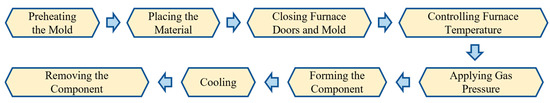 The principle of SPF lies in utilizing the exceptional plastic deformation ability of materials under high temperature and low strain rate conditions to produce high-precision and complex-shaped metal components. A typical process is shown in Figure 1, where the material forming process exhibits high continuity. Key steps in the process include controlling furnace temperature and applying gas pressure, all of which ensure the forming quality of the final product. The SPF equipment primarily comprises units such as hydraulic presses, heating systems, and pneumatic systems, all of which are highly interdependent.