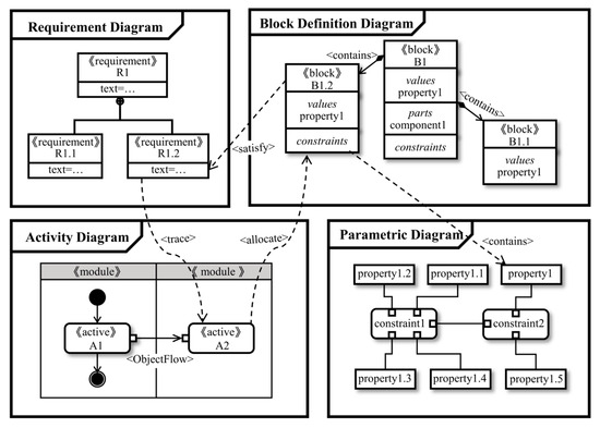 - Friedenthal, S. A Practical Guide to SysML: The Systems Modeling Language; Morgan Kaufmann: Burlington, MA, USA, 2014; ISBN 978-0-12-800202-5. [Google Scholar]