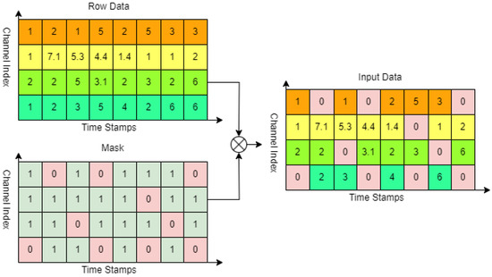 Figure 2 illustrates the process of simulating data missing in the data preprocessing stage of the imputation problem in this paper, where the original data are processed based on the masking matrix.