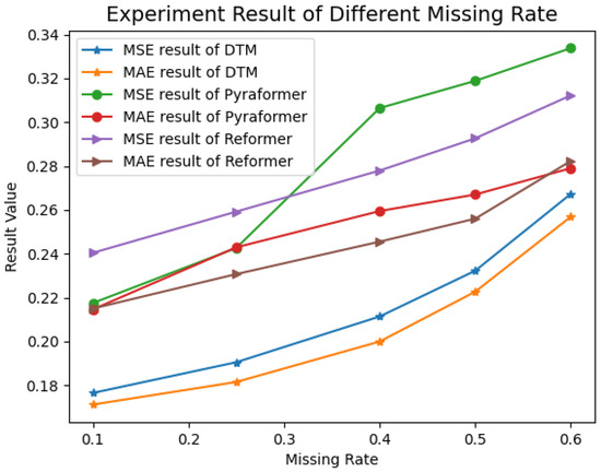 Figure 9, we observe that across data missing rates ranging from 0.1 to 0.6, both the MSE and MAE of DTM remain consistently lower than those of Reformer and Pyraformer, demonstrating the stable performance superiority of our proposed model.