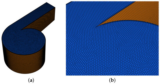 The simulation was executed with a time step of 0.01 s and 5000 iterations to ensure complete fluid development and accurate results. The numerical simulations were performed on a high-performance computing (HPC) system equipped with 16 CPU cores and 64 GB of RAM (LENOVO ThinkStation P520, Intel Xeon W2145 @ 3.7 GHz). The computational solver was executed in parallel processing mode to optimize the simulation time and ensure efficient resource utilization. Figure 4 shows the final mesh configuration with zoomed-in views of selected region to illustrate mesh refinement.