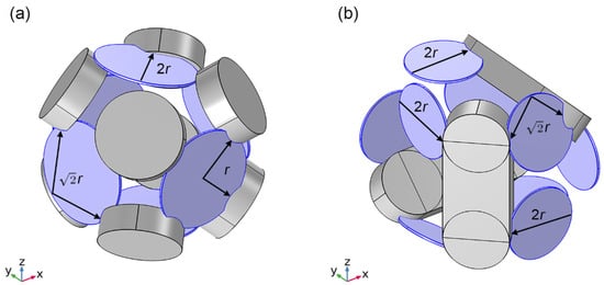 In the previous section, the characteristic frequency difference between the isotropy dual crack analytical model and the Gurevich analytical model is due to the difference in the selection of the characteristic length of the squirt flow. The characteristic length of the squirt flow  is the distance between two points along the direction of the squirt flow in the compliant crack, one point being the junction between the compliant crack and the stiff crack, and the other point being the farthest point from the junction in the compliant crack. Figure 8 shows the squirt flow characteristic lengths of compliant crack with different coordination numbers in the two extended models. It should be noted that in order to clearly show the difference between different squirt flow characteristic lengths, the radius r of compliant crack is used as the standard for convenient differentiation. However, due to the interconnection between compliant cracks and stiff cracks, the characteristic length of the squirt flow is smaller than the value indicated in the figure. This can be directly measured using the measurement tools in the model to obtain an accurate value, which can then be incorporated into the analytical model for calculations. The characteristic thickness of the squirt flow  is the thickness of the compliant crack. The characteristic frequency of the squirt flow is determined by the aspect ratio of the compliant crack , which can be calculated using characteristic length  and thickness  of the squirt flow []: