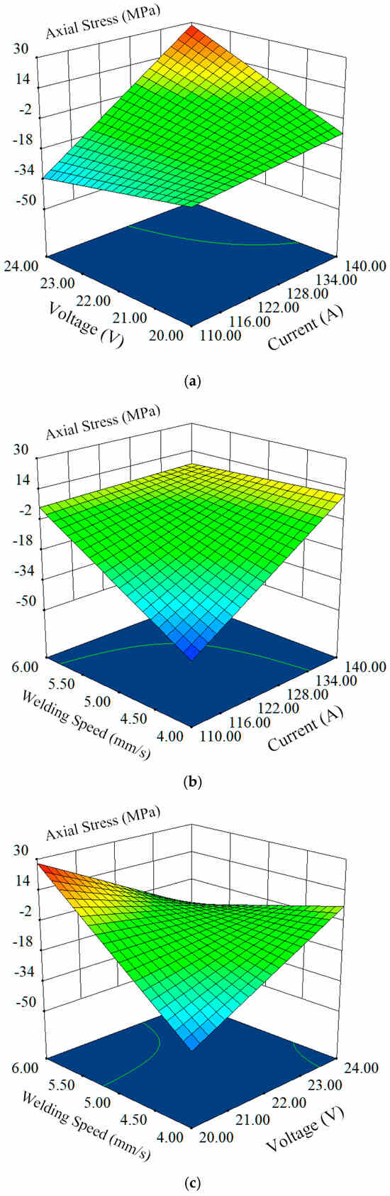 - Optimization of Welding Parameters: Through the application of Response Surface Methodology (RSM) and multi-objective optimization, the welding parameters were tuned to reduce residual stress levels. Optimal conditions were found at 110 A current, 22 V voltage, and 4 mm/s speed, resulting in a 20.5% reduction in axial stress and a 58.1% reduction in circumferential stress.