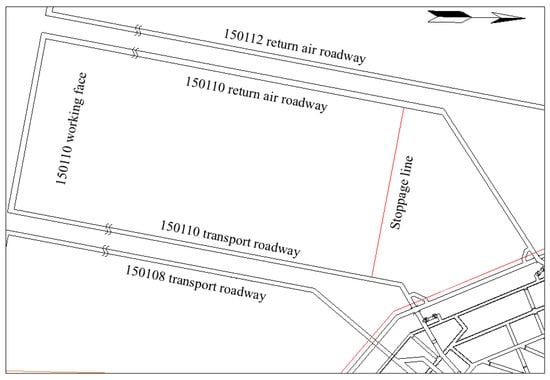 According to the mining sequence plan, the 150108 working face is the continuation of the 150110 working face, with a pillar width of 30 m. The relative position relationship is shown in Figure 2. Affected by the mining activities of the 150110 working face, the mining pressure in the transportation roadway of the 150108 working face is significant, and the significant surrounding rock deformation, requiring the expansion and repair of secondary support. At the same time, during the advancement of the 150110 working face, untimely roof collapse caused a large area of roof hanging at the end. To prevent the accumulation of corner gas and air leakage in the mined-out area, frequent construction of gob bag isolation walls at the working face end is necessary. The actual site conditions are shown in Figure 3. The large deformation of the surrounding rock and large-area roof hanging in the roadway pose certain safety risks to production operations, seriously affecting production progress and increasing labor and material input.