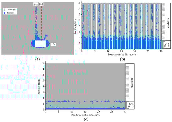 (a) Plastic zone distribution of roadway surrounding rock; (b) Section A-A; (c) Section B-B.