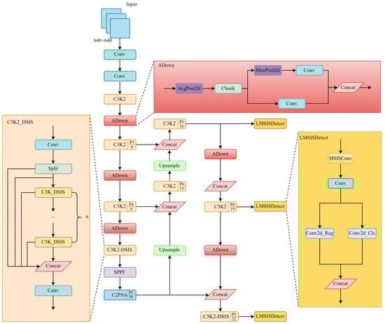 • DSISConv and MSISConv are convolutional methods that selectively incorporate information at two scales and multiple scales, respectively. DSISConv is combined with C3K2 to create C3K2–DSIS, enhancing adaptive multi-scale feature extraction for enhanced detection of defects across varying sizes.