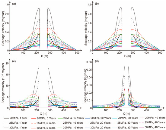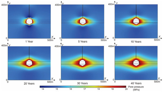 - The changes in the mechanical fields of the salt layers and mudstone interlayers affect their porosity and permeability, subsequently leading to the variations in the hydraulic field. Conversely, the alterations in the hydraulic field influence the CO2 seepage velocity, pore pressure, and effective stress within the salt layers and mudstone interlayers, thereby modifying the mechanical fields.