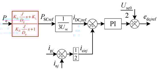 According to Equation (4), the fundamental frequency component of the circulating current IACj is introduced to balance the power between the upper and lower bridge arms [22,23].