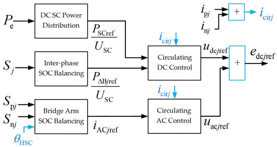 According to Equation (3), a phase-to-phase power correction value is introduced into the circulating DC component iDCjref in the DC-side SC power control to balance the phase-to-phase SOC.