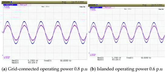 As shown in Figure 7a, the system can directly operate in islanding mode during planned disconnection, or it can disconnect and operate in islanding mode under fault conditions where the grid-connected state operates below the voltage curve shown in Figure 6, by setting Soncmd = 0.