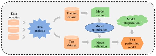 Figure 1 illustrates the model development process for optimizing the performance of silicon oxide materials. Firstly, data are acquired from public datasets to establish a database for model training. Next, the data undergo analysis and preprocessing to ensure data quality and applicability. The dataset is then divided into training and testing sets. The model is trained using the training set, with optimal parameters explored during the training process. Model performance is enhanced through hyperparameter optimization, and the reliability and effectiveness of the model are validated. Finally, the model is interpreted to investigate key patterns influencing material performance, supporting material screening.