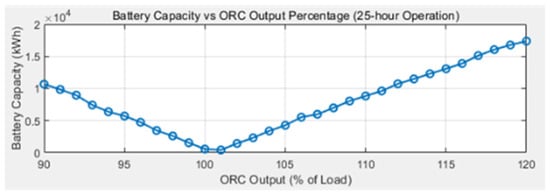 Figure 6, the minimum battery capacity was achieved at this ORC output ratio, indicating optimal sizing under the given constraints. Concurrently,