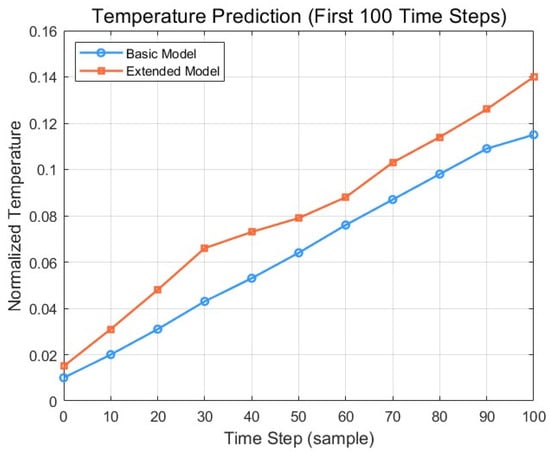Figure 24 compares the estimation results of both models against the actual temperature over the first 100 time steps of a test sequence. While both models exhibited a gradual increasing temperature trend, the extended model consistently maintained more stable estimation performance, closely tracking the actual values.