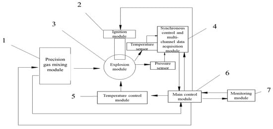 Through a systematic review of the existing literature, it has been found that the majority of experimental conditions in previous studies on methane explosive limit characteristics have been limited to temperatures below 200 °C, while research on methane explosion characteristics under high-temperature conditions above 200 °C is relatively scarce [12]. Therefore, this paper reports the design of experimental detection equipment to test the effect of methane–air atmosphere on the lower explosive limit at higher temperatures, as well as to study the lower explosive limits of air/gas with components such as CO2, N2, O2, and H2O.