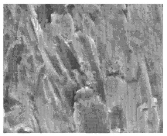 From the analysis of the surface of the samples, it can be concluded that the behavior is similar in all cases, with some damage, but with the same general pattern in the grooves of the material by the erosive particles. The leading-edge area of the sample has a groove mainly oriented transversely to the edge. This is the behavior observed in Figure 11 and Figure 12. As you move towards the interior of the sample, groove directions without transverse orientation and randomly oriented ones appear, as well as impact marks that do not correspond to the small angles of incidence tested. This shows that the test used resembles the dispersion of the particles flow at the leading edge of the fan, and there are vortices or eddies in the leading-edge area. Furthermore, much of the groove is linear perpendicular to the edge, which validates the action of the leading edge.