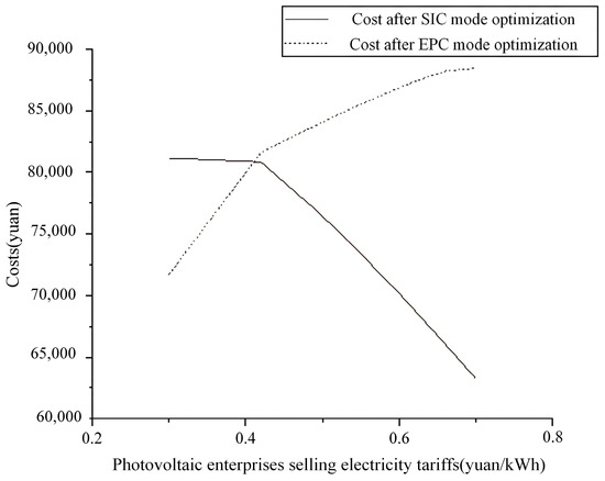To ensure the profitability of the PV enterprise and enable farmers to benefit from preferential tariffs, the SIC mode sells electricity at the same price as the electricity purchased from the PV enterprise in the EPC mode. The optimal operating costs for the two modes are illustrated in Figure 4.