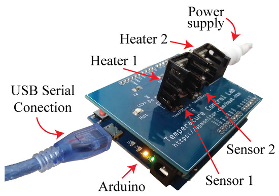 - Hedengren, J.; Martin, R.; Kantor, J.; Reuel, N. Temperature Control Lab for Dynamics and Control. 2019. Available online: https://apmonitor.com/pdc/index.php/Main/ArduinoTemperatureControl (accessed on 18 May 2025).
