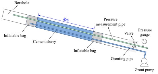 Schematic diagram of the pressure grouting seal method using bag/cement slurry for Ding6-32070 working face.