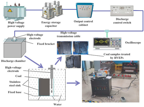 - Li, C.; Nie, B.; Zhang, Z.; Liu, X.; Zhao, Z.; Zhang, C.; Lu, W. Experimental study of the structural damage to coal treated by a high-voltage electric pulse discharge in water. Energy Fuels 2022, 36, 6280–6291. [Google Scholar] [CrossRef]