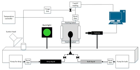 Lastly, the setup is equipped with a data acquisition and imaging system with a camera that makes it possible to monitor and take dynamic images of the droplet, and the IFT is measured using a Drop Shape Analyzer. Figure 6 represents a schematic of the experimental setup used for interfacial tension measurements in this study.