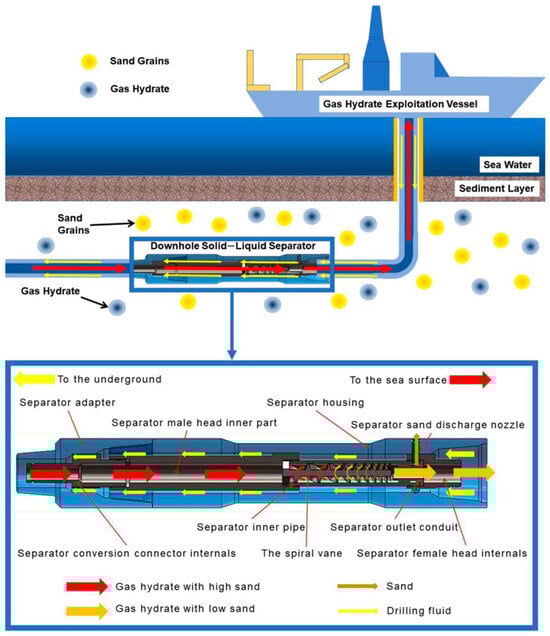 - Nie, Q.; Zhang, S.; Huang, Y.; Yi, X.; Wu, J. Numerical and Experimental Investigation on Safety of Downhole Solid–Liquid Separator for Natural Gas Hydrate Exploitation. Energies 2022, 15, 5649. [Google Scholar] [CrossRef]