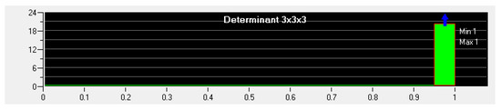 Figure 11 illustrates the outcomes of the grid quality inspection, assessed under the Jacobian determinant criteria in ICEM (ANSYS ICEM CFD). As depicted, the Jacobian determinant values of the grid range from 0.95 to 1.0, which is indicative of superior grid quality.