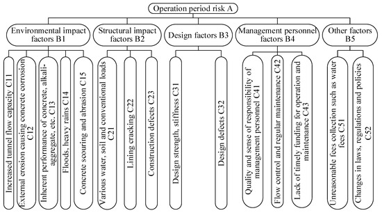 Hierarchical structure model of risk analysis in tunnel operation period.