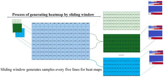 During data preprocessing, a sliding-window row-wise sampling strategy was employed, with a window length set to 0.5 m. Every five rows of logging data were transformed into a thermal map and labeled with the corresponding fluid type. This strategy increases data diversity and model coverage, ultimately generating 16,800 thermal map samples, comprising gas zones (5000), water zones (6000), water-bearing gas zones (3000), and gas–water coexisting zones (2800).