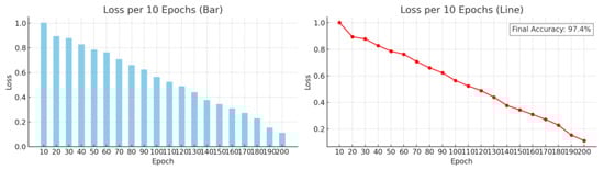 To provide a more intuitive understanding of the ResViTNet model’s training dynamics and performance, bar and line charts were employed to visualize the loss trends on both the training and validation sets across epochs, as shown in Figure 4. With the increase in training epochs, the training loss gradually decreases and the validation loss converges accordingly, demonstrating the effectiveness and robustness of the model.