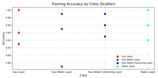 The results indicate that the model performs particularly well in identifying gas zones and water zones, with F1-scores reaching 97.5% and 97.0%, respectively. Although the prediction accuracy for gas–water coexisting zones is comparatively lower, the model still demonstrates strong classification capabilities across all fluid categories. These findings further validate the robustness of the ResViTNet model in the challenging task of fluid identification in complex tight gas reservoirs.