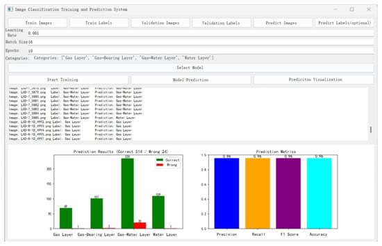 Based on the ResViTNet model, this study designed and developed an intelligent fluid identification and prediction system for tight gas reservoirs. The system was implemented using Python (v3.9) and PyQt5 (v5.15.7) and integrates functionalities such as digital processing of well logging data, model training and inference, and results visualization. It supports automated identification and prediction of fluid types.