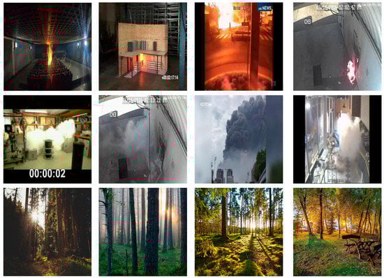 As demonstrated in Figure 6, the sample images depict flames, smoke, and non-fire objects. The non-fire objects resemble real fire objects, such as smoke and sunset. Furthermore, images containing objects unrelated to a fire are also classified as non-fire objects.