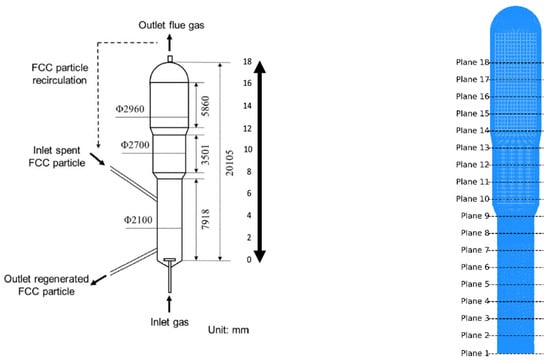 - Yang, Z.; Zhang, Y.; Oloruntoba, A.; Yue, J. MP-PIC simulation of the effects of spent catalyst distribution and horizontal baffle in an industrial FCC regenerator. Part I: Effects on hydrodynamics. Chem. Eng. J. 2021, 412, 128634. [Google Scholar] [CrossRef]