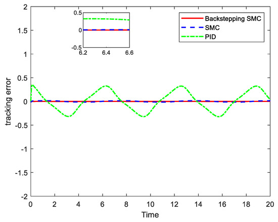 Comparison of the tracking error of the three controllers.