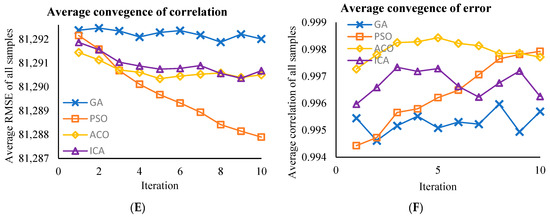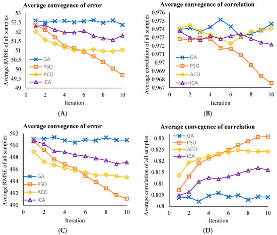 The optimized algorithms were evaluated by examining the average convergence of their RMSE and correlation coefficient across all samples. The results indicate that potential for further enhancement in performance may be realized by extending the number of iterations or the computational resources assigned to the algorithms.