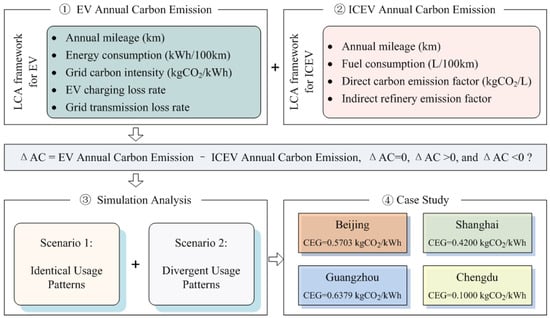 Flowchart of the methodology for assessing annual carbon emissions of EVs and ICEVs.