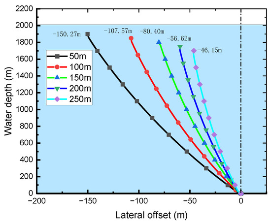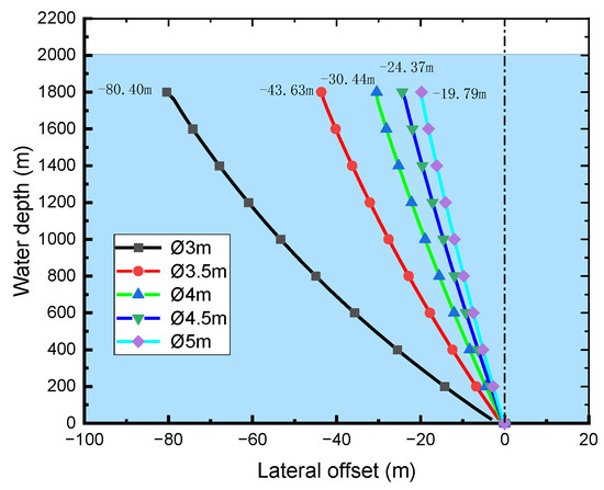The lateral offset distribution of the mud return line under varying external diameters of the buoyancy cans.