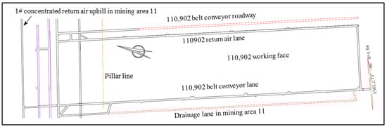 Diagram of the location of the 110,901 working face in Luotuoshan coal mine.