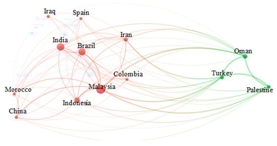 Mapping visualization of countries in the investigation of the countries in natural coagulants in wastewater treatment research.