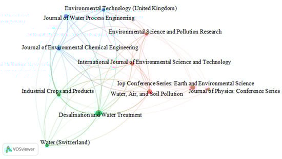 Networking visualization of journals published in 2015–2024 that have more than 6 documents related to natural coagulants in wastewater treatment research in 2015–2024.