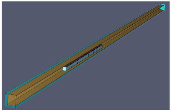 To align the research conditions more closely with the actual project, a heavy-duty railroad transportation tunnel in Shanxi was selected for research visits and investigations. This study is conducted in accordance with the International Union of Railways standard UIC564-2 (International Union of Railways, 2019) [24]. A 500 m long tunnel with a rectangular cross-section measuring 4.8 m in width and 5.5 m in height was established. The wall thickness is 0.2 m, taking into account the wall material used in the actual project. This setup aims to facilitate a more thorough investigation of temperature field variations.