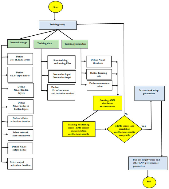 Training and testing samples were needed to construct an ANN model. The ANN model is developed using the training sample, and its predicted accuracy is verified using the testing sample. One crucial factor to consider when creating an ANN is separating the data into training and testing datasets. About 112 patterns make up the data in this study, which was split into 80% and 20% for the training and testing phases, respectively.