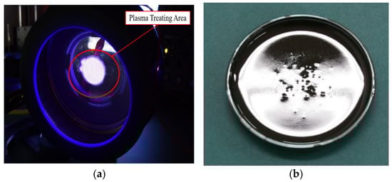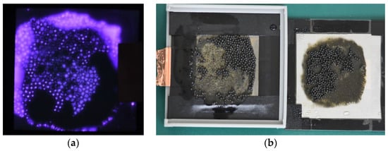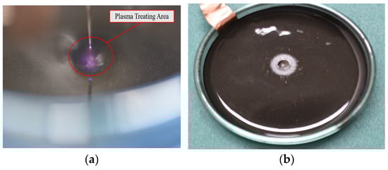 Direct treatment type of DBD plasma reactor: (a) treating oily sludge (top view); (b) appearance of treated oily sludge.