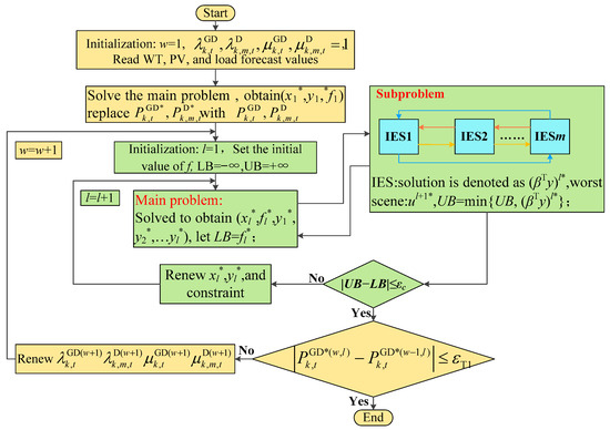 Therefore, the two-stage robust optimization problem can be divided into the main problem min and the subproblem max-min, whose coupling and non-convexity make it impossible for the solver to find the two optimal solutions. In this paper, ATC combined with the C&CG algorithm is used to solve the model.