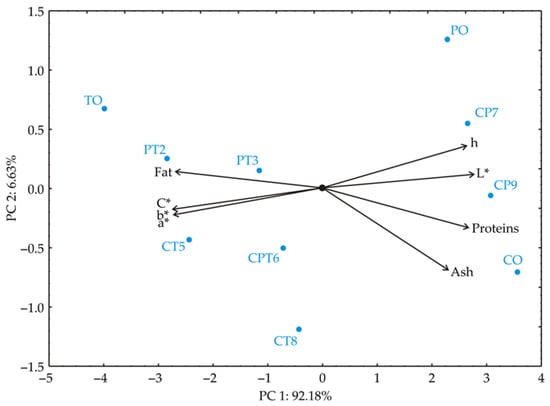 The proximate composition, colour attributes, and sensory compliance quality scores of the samples are presented in Table 3. Statistical evaluations reveal significant differences in the chemical composition and colour parameters of the samples.